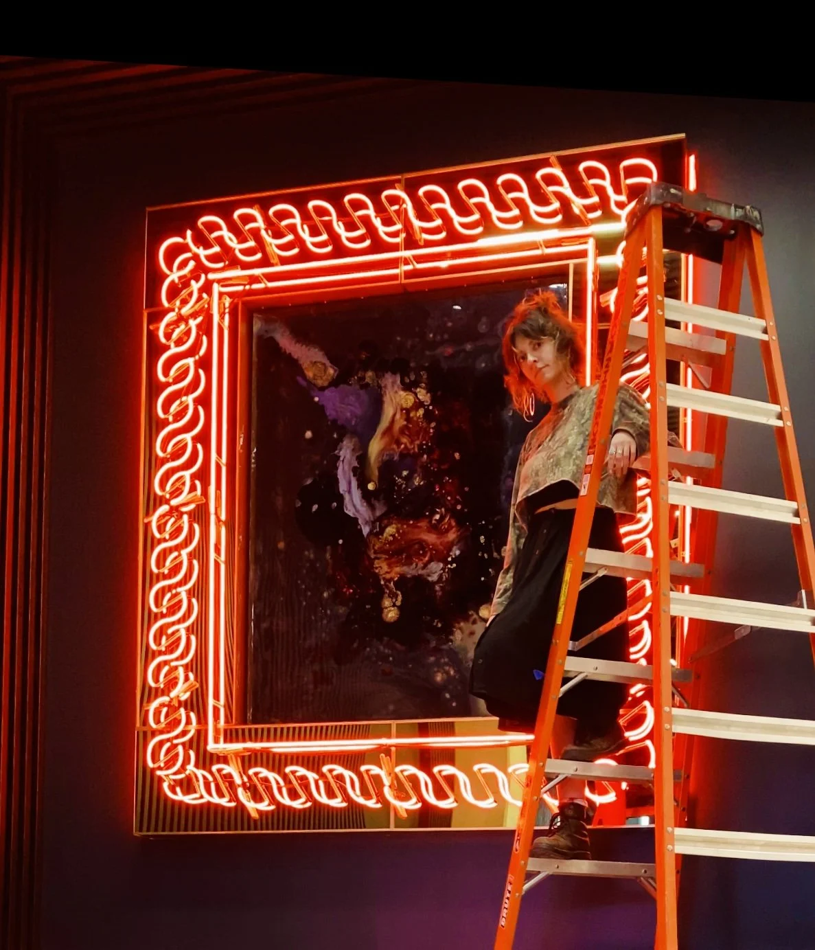 GOLD DAWN, RED SUNSET- Neon + Mirror frame